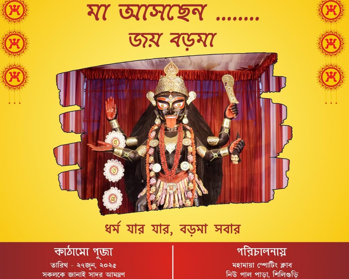 “ধর্ম যার যার, বড়মা সবার” — এই আস্থা ও শ্রদ্ধাকে সামনে রেখেই শিলিগুড়ির নিউ পালপাড়া এলাকায় মহামায়া স্পোর্টিং ক্লাবের পরিচালনায় আগামী ২৭শে জুন অনুষ্ঠিত হতে চলেছে কাটোমা পুজো। প্রতি বছরের মতো এবছরও মা কালীর বিশেষ রূপে বড়মার আরাধনায় মাতবে গোটা এলাকা।