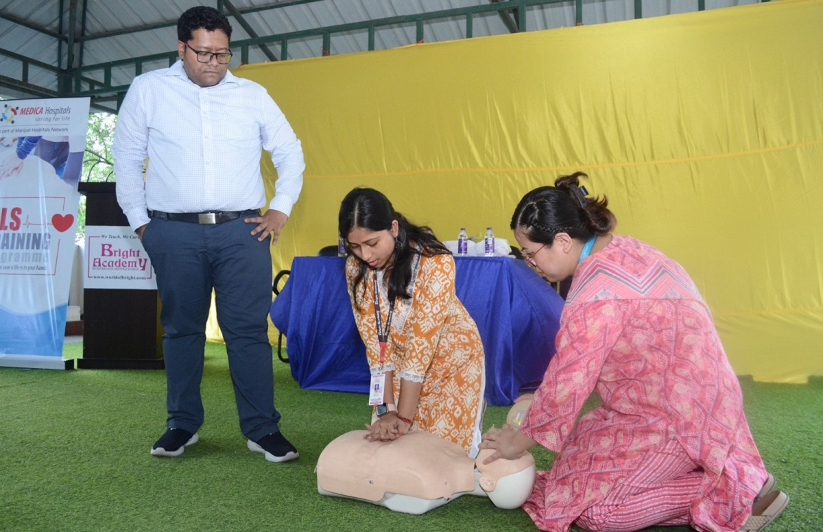 Led by Dr. Samit Parua, Consultant – Critical Care at Medica, the training aimed to equip non-medical individuals with essential skills to act during medical crises. Dr. Parua emphasized that “BLS training acts as a vital bridge until professional help arrives,” especially in cardiac emergencies where timely intervention can save lives.