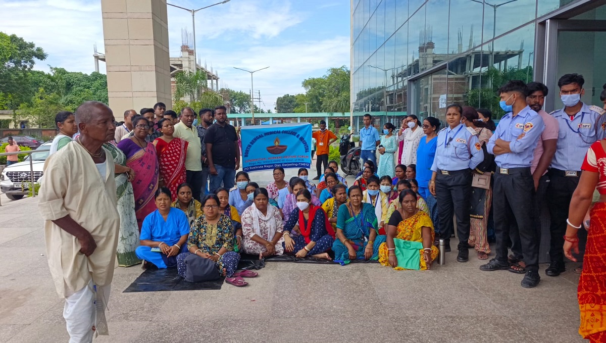 উত্তরের অন্যতম বৃহৎ চিকিৎসা প্রতিষ্ঠান উত্তরবঙ্গ মেডিকেল কলেজ ও হাসপাতালের সুপার স্পেশালিটি ব্লকের সামনে বিক্ষোভে ফেটে পড়লেন প্রায় ২৫৪ জন অস্থায়ী কর্মী। এই বিক্ষোভের ফলে ব্যাহত হয় হাসপাতালের স্বাভাবিক পরিষেবা। রোগী ও তাদের পরিজনদের চরম ভোগান্তির মুখে পড়তে হয়।